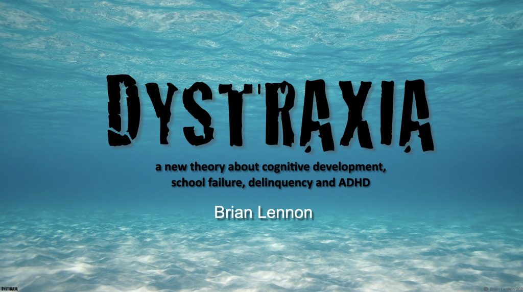 I believe that dystraxia is one of the most significant psychological variables to consider especially by anyone dealing with young people. My observations are based on over twenty-five years of working with teenagers but the importance of this applies to all children. An investigation of the origins of dystraxia may shed light on the roots of anti-social behaviour, ADD, ADHD and school failure. I coined the term “dystraxia” in 2010. So, what is dystraxia?